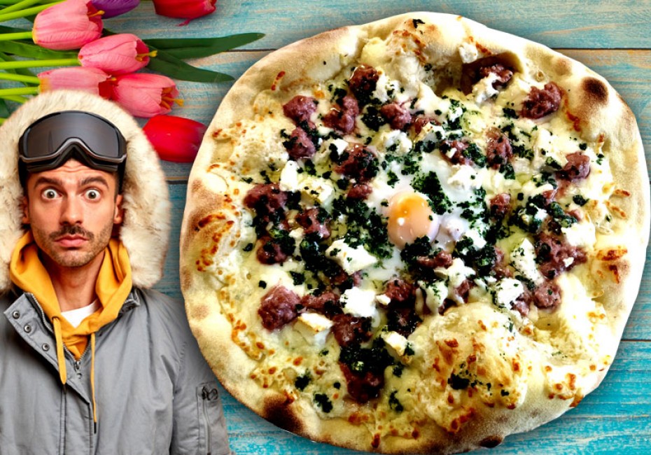 Base crème fraîche, mozzarella râpée, viande hachée, oeuf, fromage de chèvre et persillade